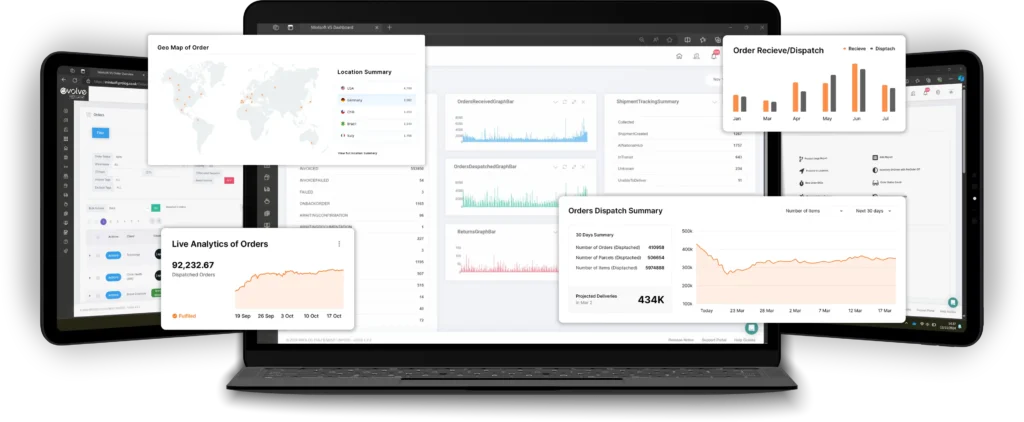 Use our cloud-based dashboard to monitor operations, analyse SKUs, track orders, and continuously evolve your fulfilment performance.